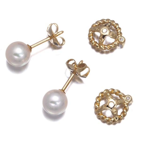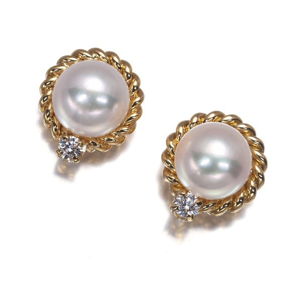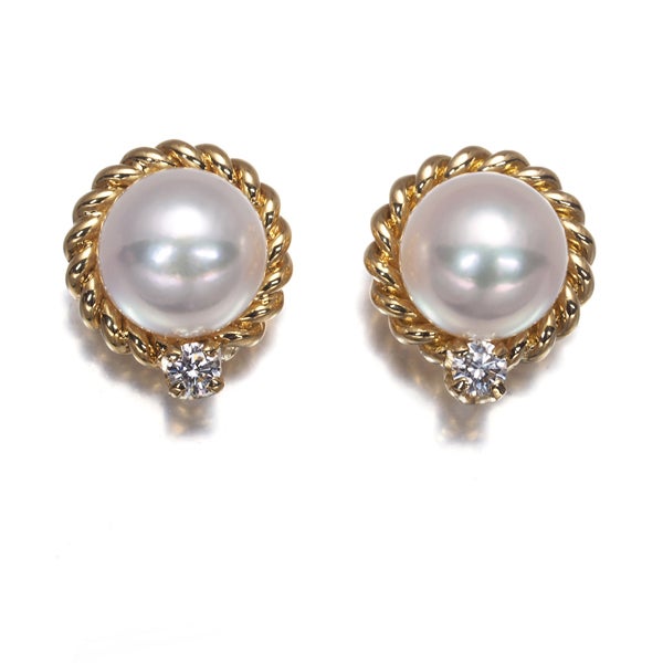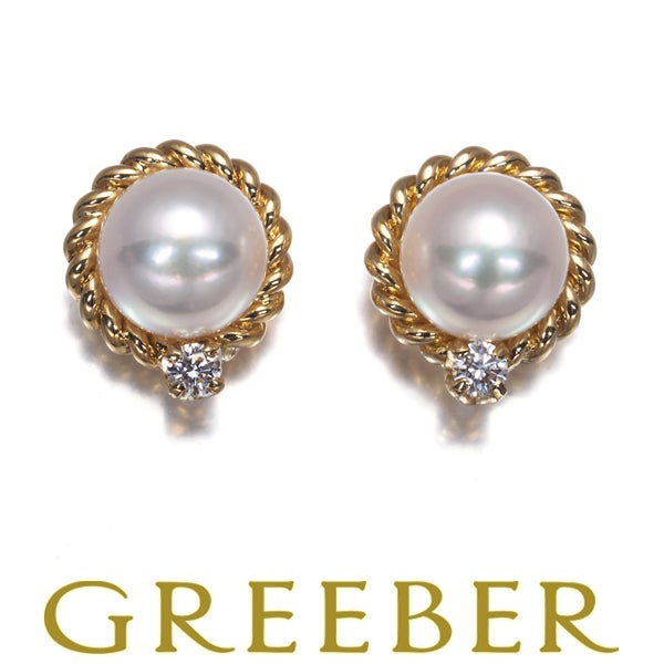 【スプリングキャンペーン!11%対象商品】ミキモト ピアス パール 真珠 6.3mm ダイヤ ダイヤモンド 0.06ct 2WAY ツイスト K18YG 【中古】BLJ