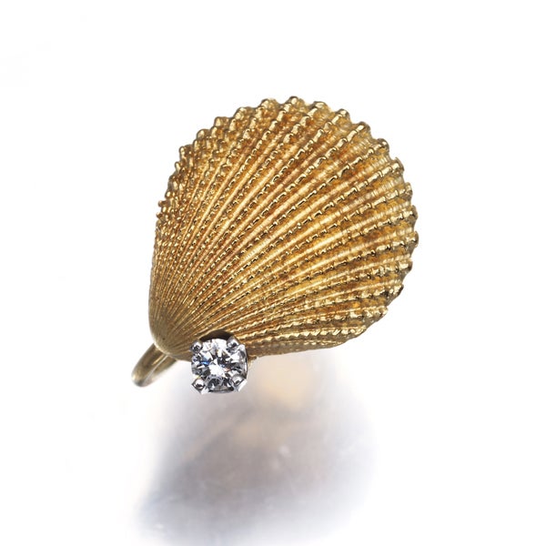 細やかな彫金細工で描かれたシェルが美しい ティファニーの素敵なジュエリー。厳選ダイヤモンドの麗しい輝きが上品な華やかさを添えていますね。※こちらは片耳のみの販売です。