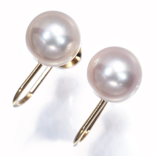 ピンクの彩浮かべるミキモトセレクトの上質アコヤ真珠をシンプルに飾ったイヤリングジュエリーです。