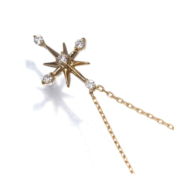 スタージュエリー厳選のダイヤが 胸元に上質の輝きを魅せるネックレス。台座にはクロスとスターのモチーフをあしらい、ダイヤの輝きと存在感を際立たせた こだわりのクロッシングスター ダイヤモンドネックレスです。
