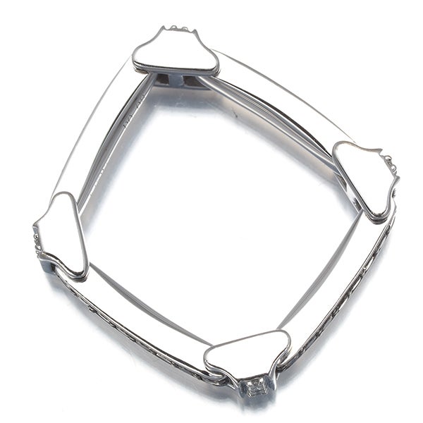 ブラウンダイヤモンドの輝きを4本のバーに留めたイーノスのリング。ホワイトゴールドの連結パーツにはクリアダイヤの煌めきを飾り、機械的なエッジのある輝きで指元を包んでくれます。