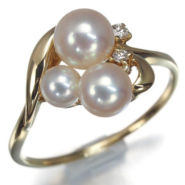 ミキモト リング パール 真珠 3.9-5.6mm ダイヤ ダイヤモンド 10号 K18YG 【中古】BLJ
