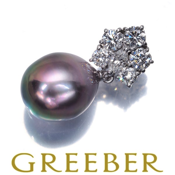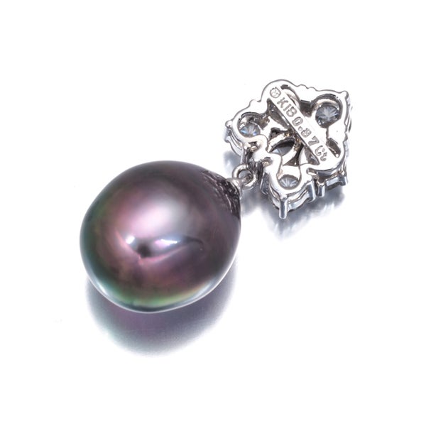 【ポイントアップ対象商品】ミキモト ペンダントトップ ブラック パール 真珠 11.2mm ダイヤ ダイヤモンド 0.87ct K18WG 【中古】BLJ