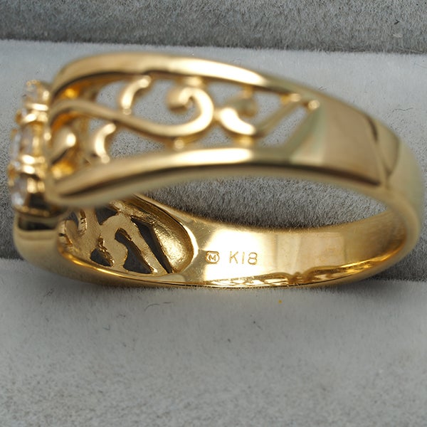 【ポイントアップ対象商品】ミキモト リング ダイヤ ダイヤモンド 0.12ct 透かし 14.5号 K18YG 【中古】BLJ