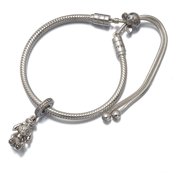 お好みのチャームアレンジが人気のパンドラのブレスレット。こちらは香港ディズニーランド生まれのキャラクター クッキー・アンのチャームがイミテーションストーンの煌めきとともに飾られた愛らしいお品。パンドラ×ディズニーの限定コラボレーションジュエリーを どうぞお見逃しなく。