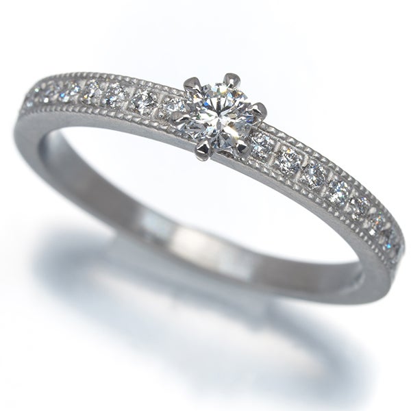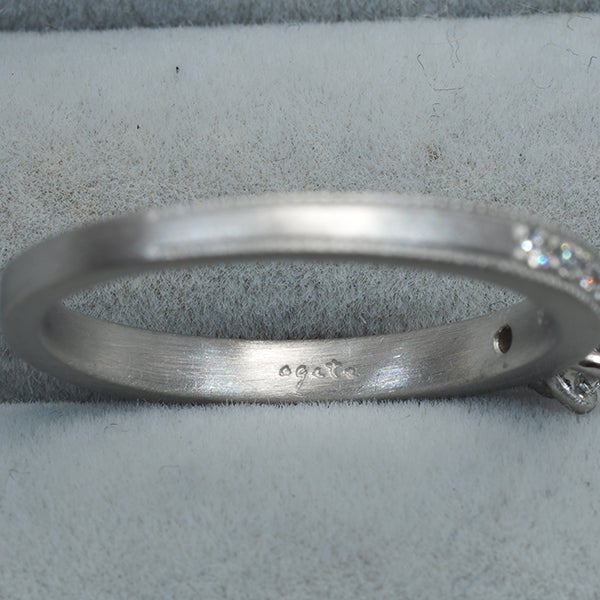 繊細に飾られたダイヤモンドの輝きと どこかクラシカルなニュアンスが、装いに煌めきを飾ってくれる アガットのジュエリー。艶消しのテクスチャーに上質ダイヤの瑞々しさを上品に飾った素敵なダイヤモンドリングですよ。