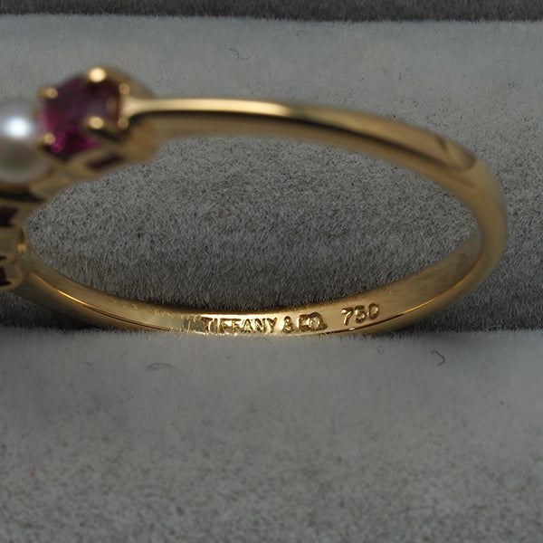 ティファニー リング ベビー パール 真珠 3.0mm ルビー 11.5号 K18YG 【中古】BLJ