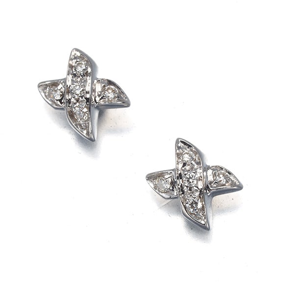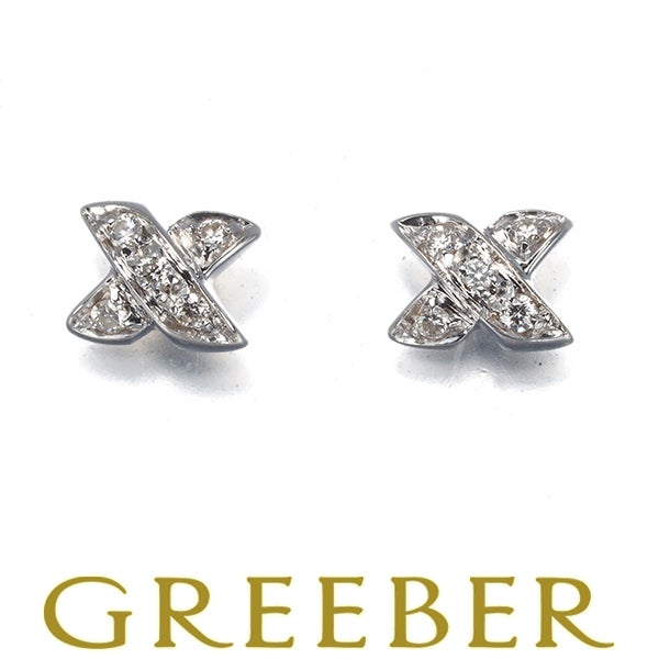 Xを描いた立体的な煌めきが美しいモチーフに上質ダイヤの輝きを飾った ティファニーのシグネチャー ダイヤモンドピアスです。