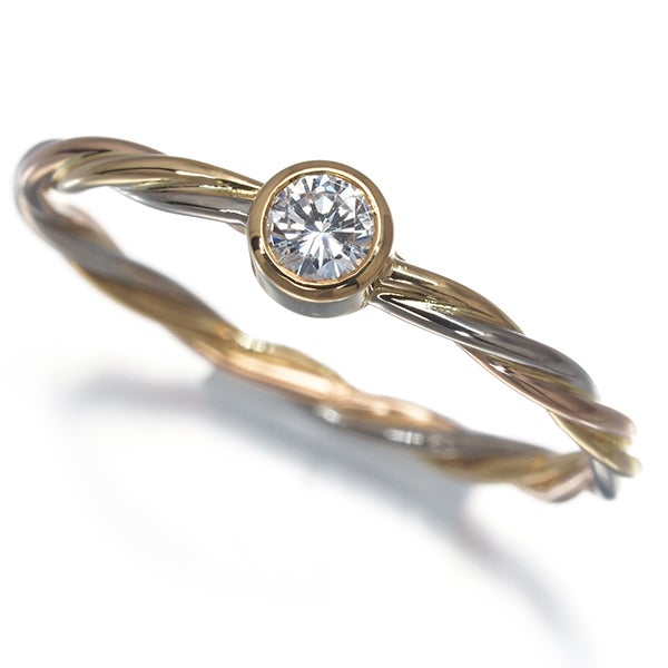優雅に絡み合うスリーカラーゴールドの光沢に厳選ダイヤモンド美しい輝きを飾った カルティエのリングです。