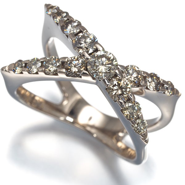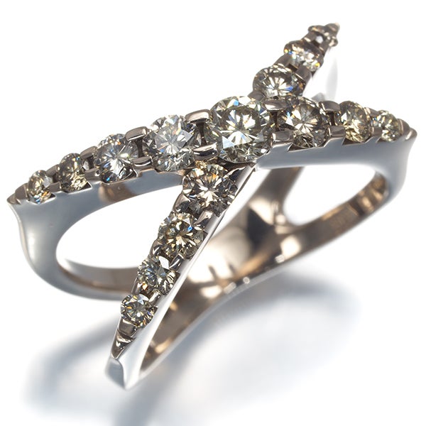 厳選のブラウンダイヤがシックな輝きを魅せる カシケイのネイキッド ダイヤモンドリングです。