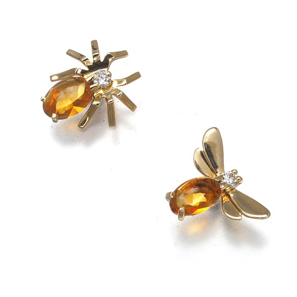 ショーメ ピアス シトリン ダイヤ ダイヤモンド アトラップモワ 蜂 ハチ 蜘蛛 クモ K18YG 【中古】BLJ