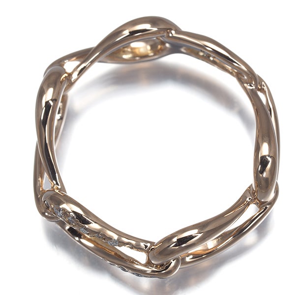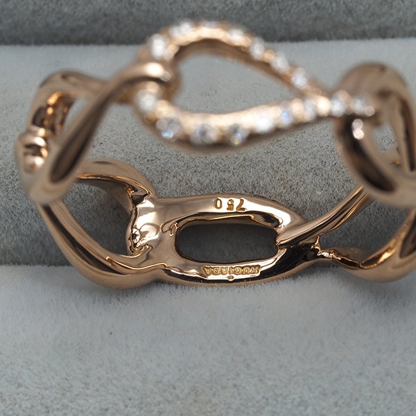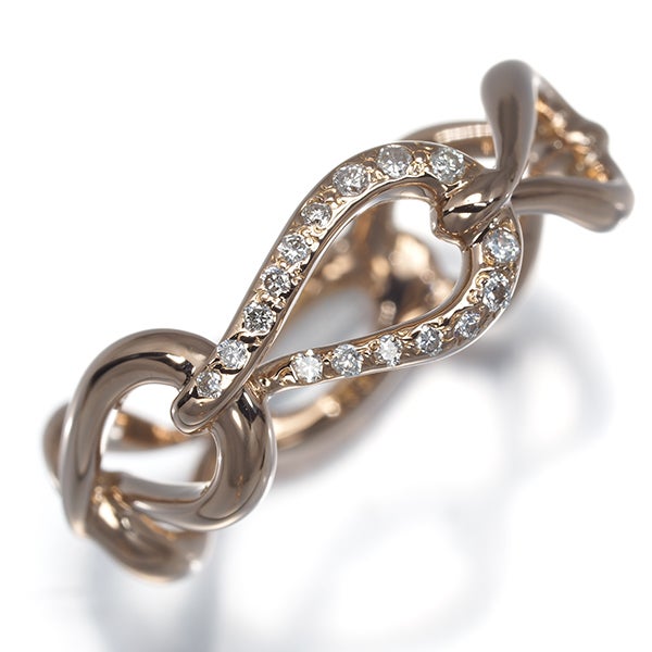 ピンクゴールドの艶やかな光沢でインフィニティを思わせる美しいフォルムを連ねた ルジアダのリング。繊細に煌めくダイヤモンドの瑞々しさをさり気なく飾った 素敵なお品ですよ。