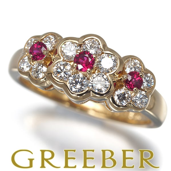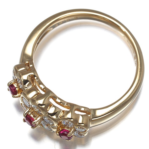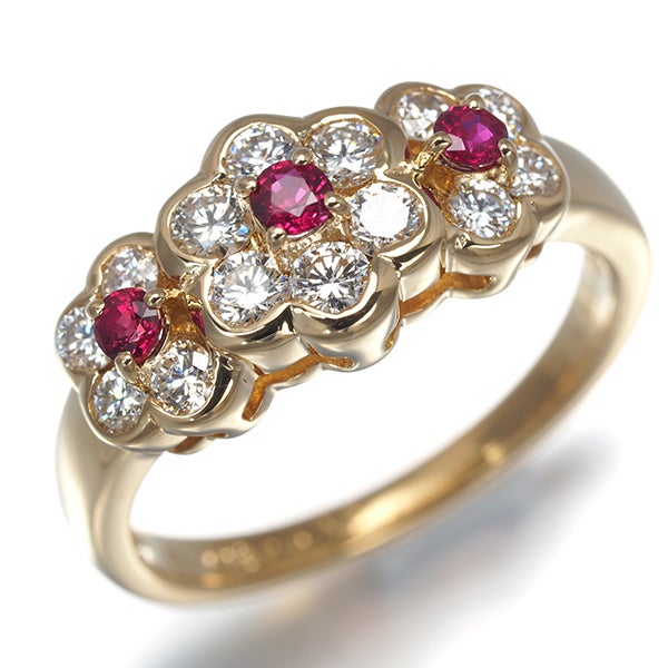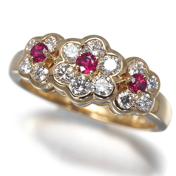 【ポイントアップ対象商品】ミキモト リング ルビー 0.22ct ダイヤ ダイヤモンド 0.60ct フラワー 11号 K18YG 【中古】BLJ