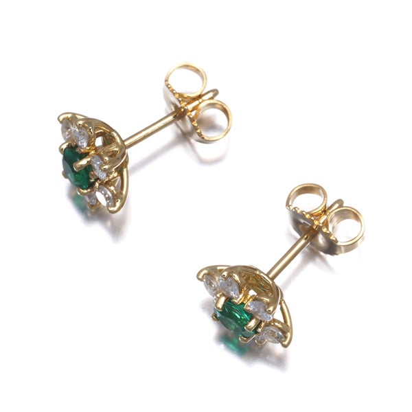 ティファニー ピアス エメラルド ダイヤ ダイヤモンド フラワー K18YG 【中古】BLJ
