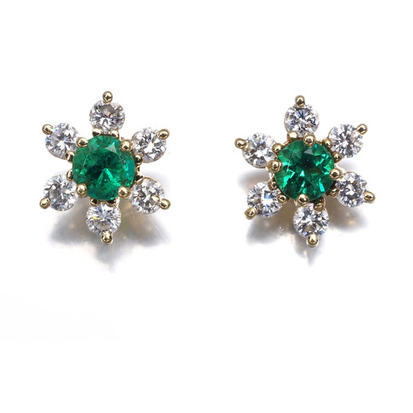 内包物もほぼ見られない透明感と彩りが美しい上質エメラルドを厳選ダイヤモンドの花びらで包み込んだ ティファニーの素敵なフラワーピアス。どうぞ様々な装いにお楽しみください。