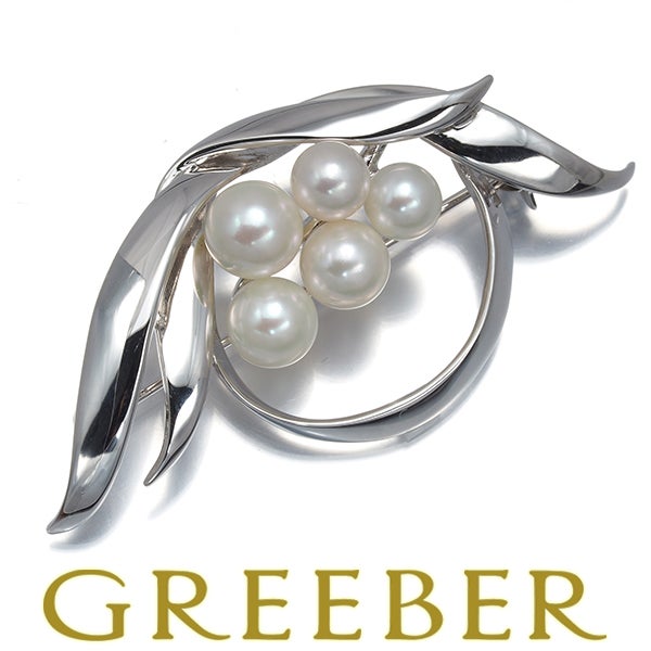 【ポイントアップ対象商品】ミキモト ブローチ パール 真珠 5.1-6.2mm リーフ シルバー 【中古】BLJ