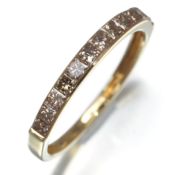 【ポイントアップ対象商品】GSTV リング ブラウン ダイヤ ダイヤモンド レールセッティング プリンセスカット 17.5号 K18YG 【中古】BLJ/GENJ