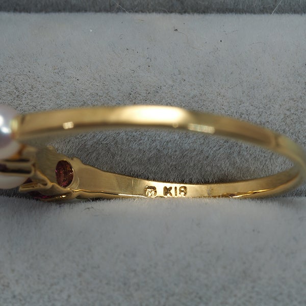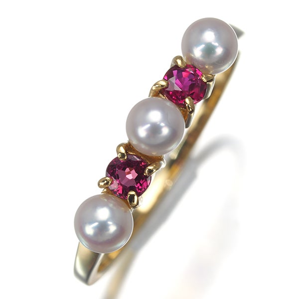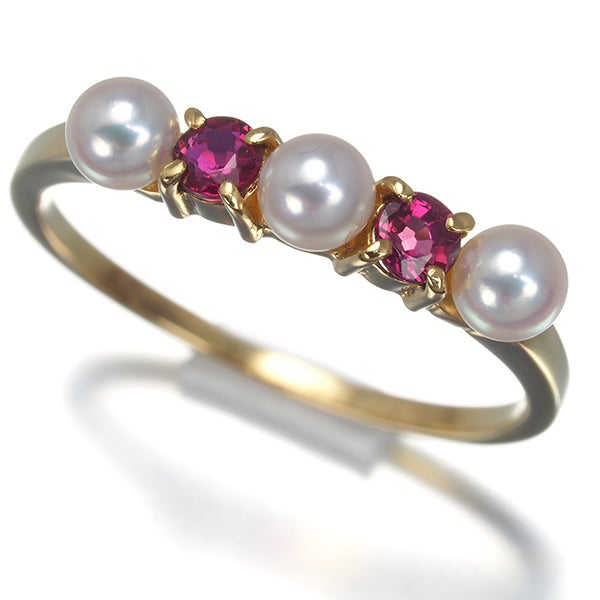 【ポイントアップ対象商品】ミキモト リング ベビー パール 真珠 3.4mm ルビー 10号 K18YG 【中古】BLJ
