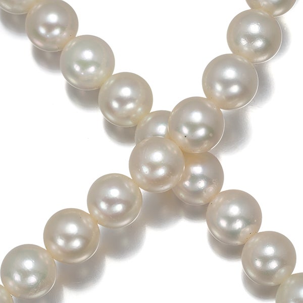 すっきりとしたホワイト系のお色味が明るい輝きで装いを照らしてくれる タサキセレクトのアコヤ真珠ネックレス。50cmの上品なレングスが 胸元にいっそうの気品を添えてくれます。