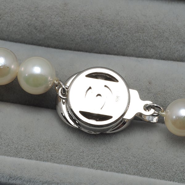 ※クラスプにはシルバー素材特有の細かなスやくすみがございます。またパールの2-3珠ほどに微細な真珠層の剥がれがございますが、いずれも着用時気になるレベルではないと思われます。