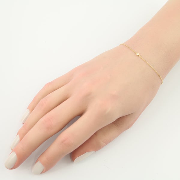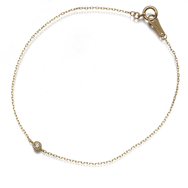 アガット ブレスレット ダイヤ ダイヤモンド 0.03ct 一粒 ミルグレイン K18YG 【中古】BLJ