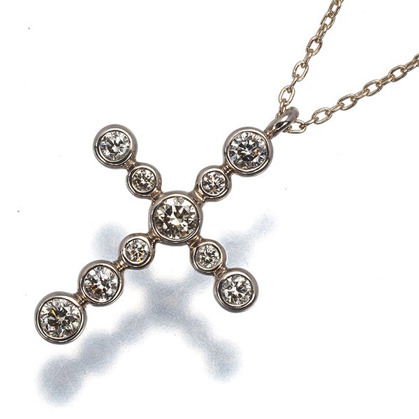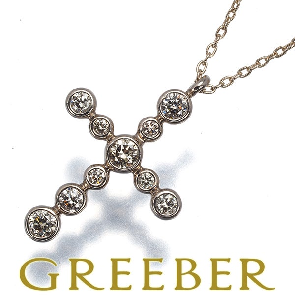 カシケイ ネックレス ブラウン ダイヤ ダイヤモンド 0.40ct ベゼル クロス ロング K18BG 箱【中古】BLJ