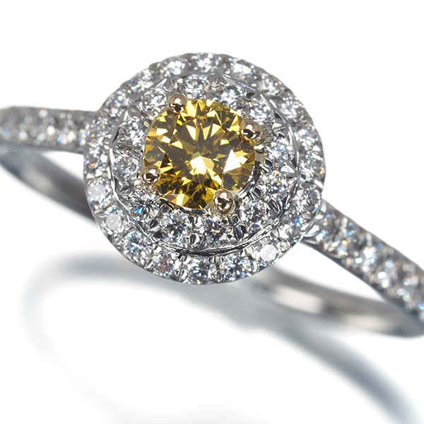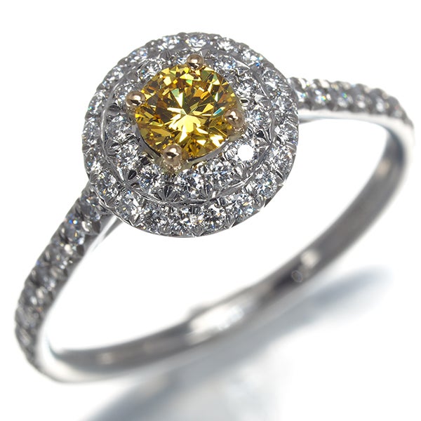 繊細かつ丁寧なセッティングで煌めく極上メレダイヤに包み込まれ、メインには素晴らしい色合いを持つイエローダイヤモンドが素晴らしい輝きを披露する ティファニーのソレストリングです。