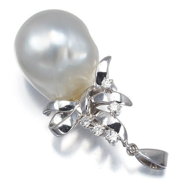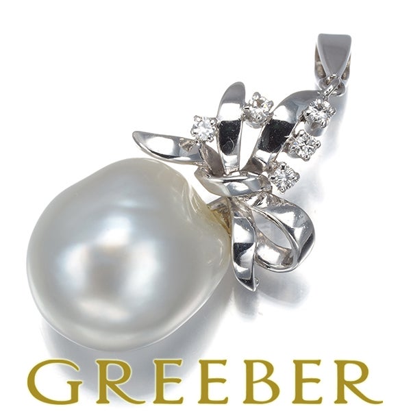 ミキモト ペンダントトップ バロック パール 真珠 12.0mm ダイヤ ダイヤモンド リボン K14WG 【中古】BLJ