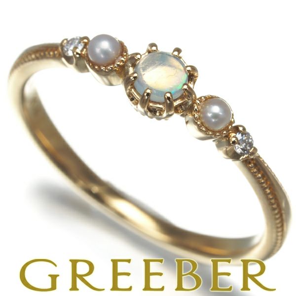 【ポイントアップ対象商品】アガット リング ホワイトオパール ダイヤ ダイヤモンド 0.02ct 真珠 1.7mm 8号 K14YG 【中古】BLJ
