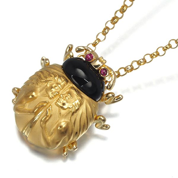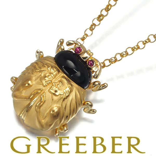 カレライカレラ ネックレス オニキス ルビー スカラベ アニマル K18YG/PG 【中古】BLJ