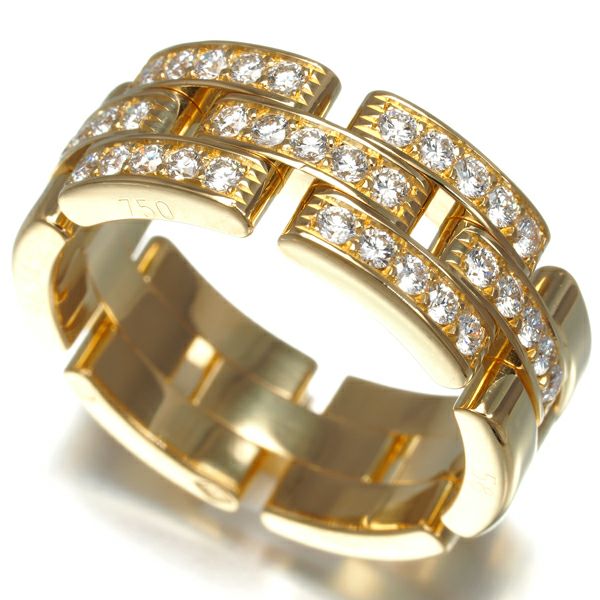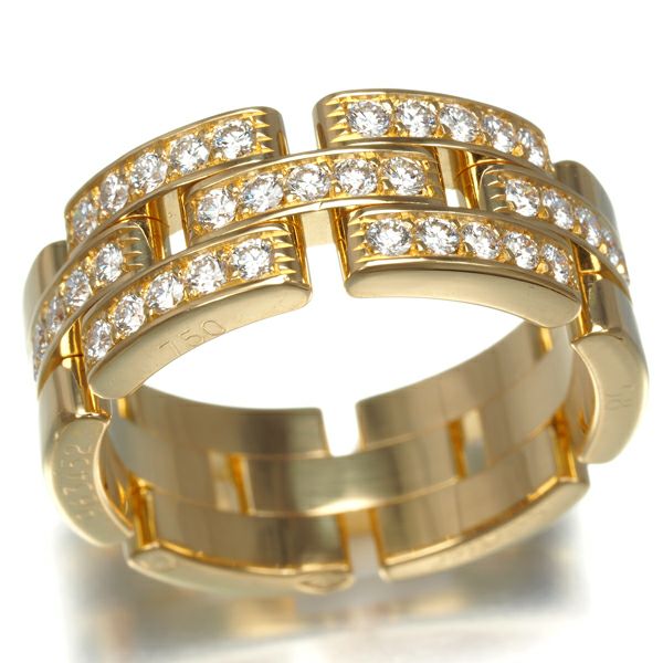 カルティエ リング ダイヤ ダイヤモンド マイヨンパンテール 3ロウ ハーフ 58号 K18YG 保証書【中古】BLJ