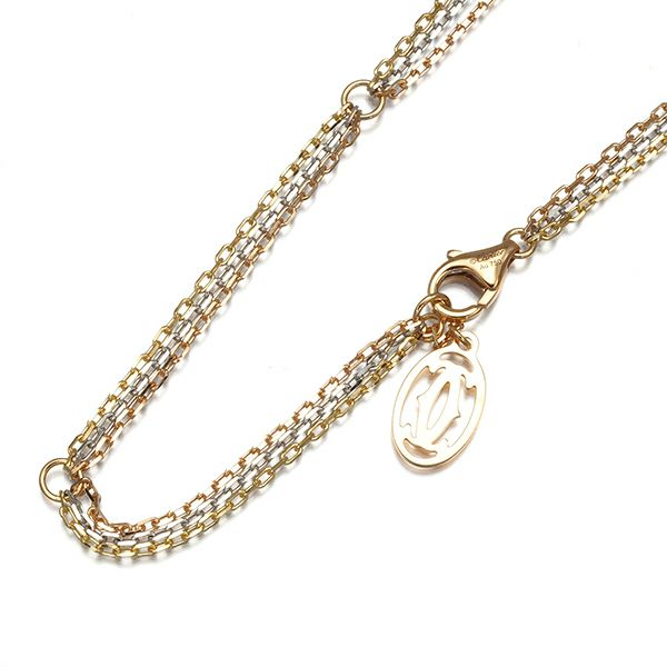カルティエ チェーントリニティネックレス スリーカラー 46cm 2Cチャーム K18YG/WG/PG 【中古】BLJ
