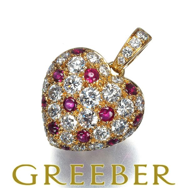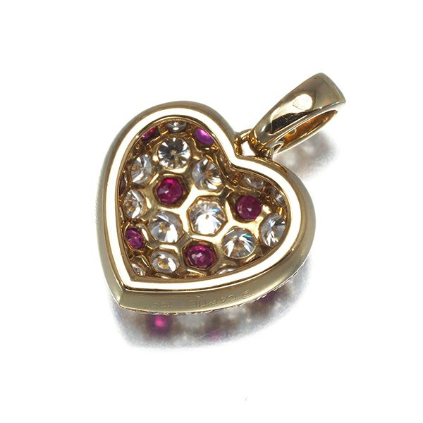 レア品 カルティエ ペンダントトップ ルビー ダイヤ ダイヤモンド ハート パヴェ K18YG 【中古】BLJ