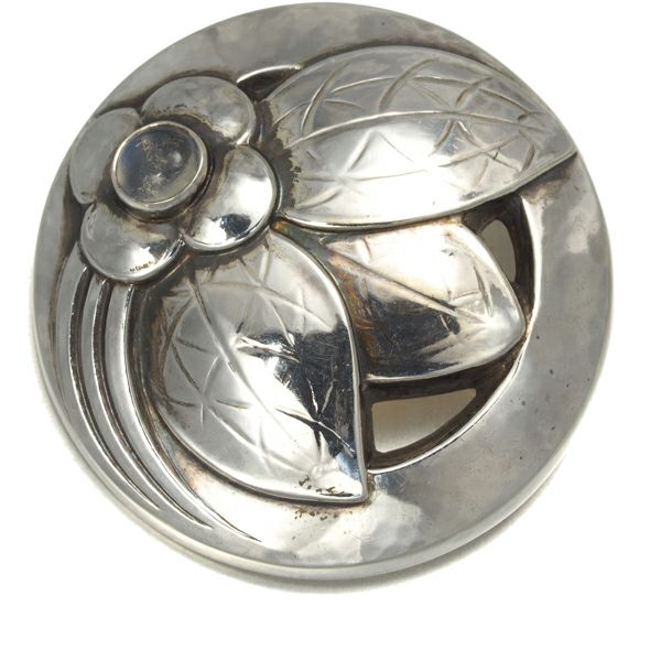 幻想的なシラーの輝きを浮かべるムーンストーンを優雅なフラワーデザインに飾ったジョージジェンセンのブローチです。