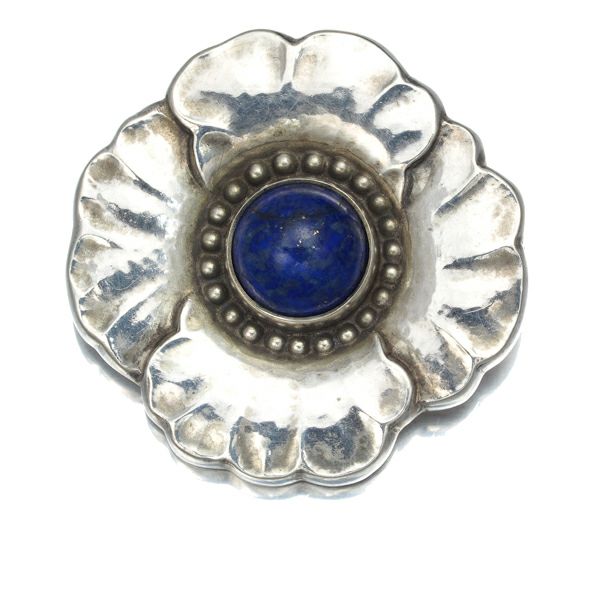 柔らかな花びらの質感を見事に描いた ジョージジェンセンならではのヴィンテージ・ジュエリー。深みのある藍の輝きを魅せるラピスラズリが上品に飾られています。