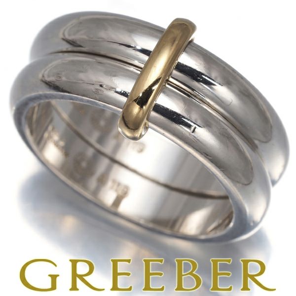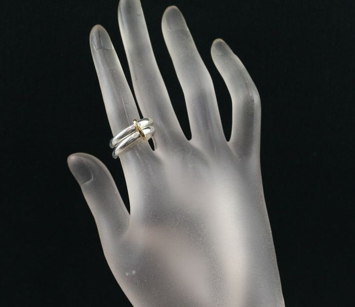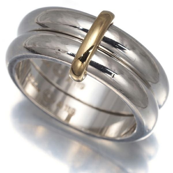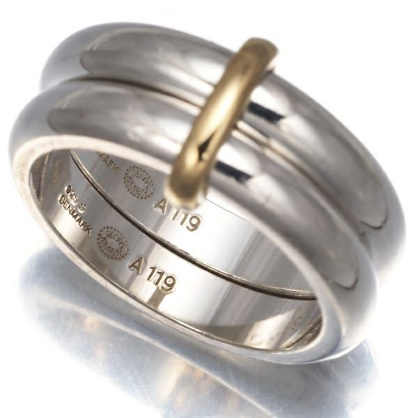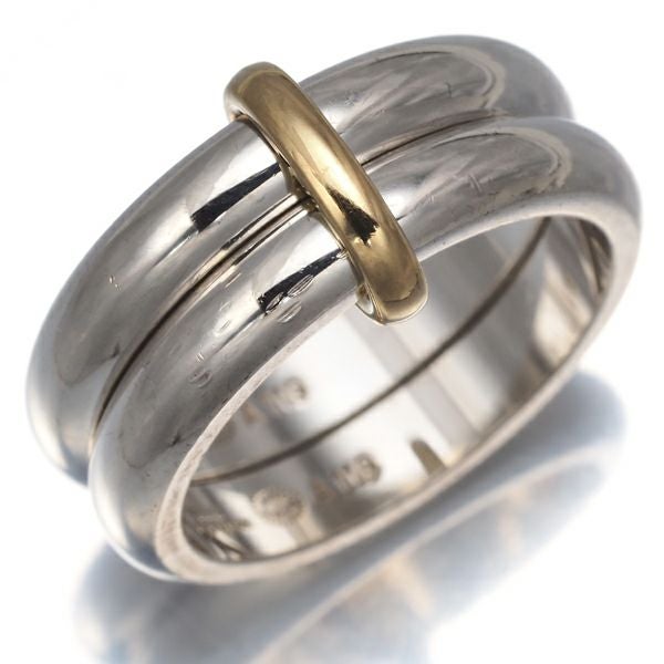 艶やかなシルバーリングを2連で飾ったジョージジェンセンのリング。連結パーツには18金を使用した上品なアクセントで演出されております。