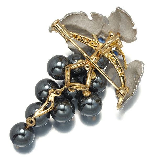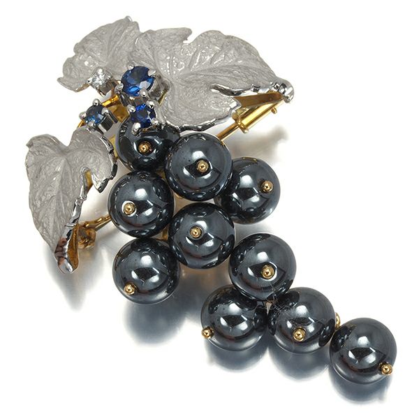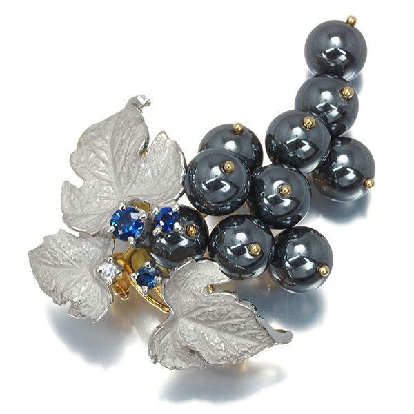 AsTime 石川暢子 石川暢子 ブローチ兼ペンダントトップ ヘマタイト ダイヤ ダイヤモンド サファイア 葡萄 K18YG/Pt900【中古】BLJ