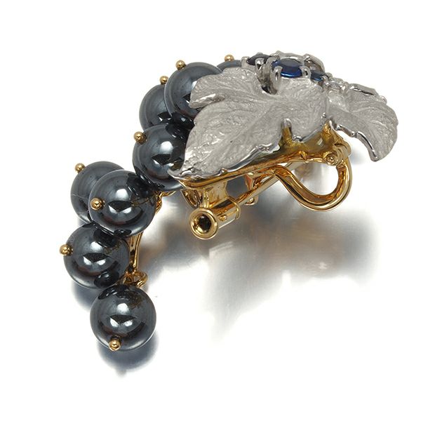 艶やかなヘマタイトの輝きを葡萄に見立てた 石川暢子さんデザインの代表的作品、AsTimeの フローラコレクションジュエリー。細やかな彫金細工とともに、厳選された宝石達の輝きが 装いを美しく飾ってくれます。