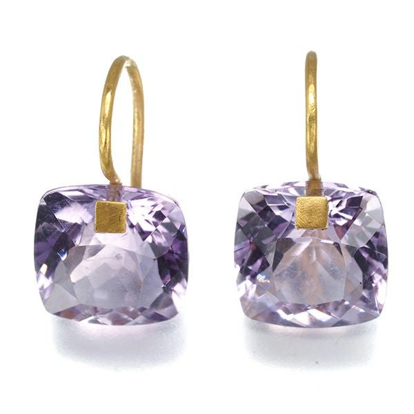 瑞々しい透明感に溢れるアメジストの輝きをヌーディーに留めたマリーエレーヌのスモールサマーピアスです。