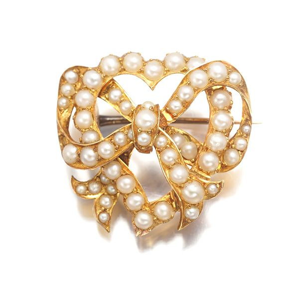 細やかな彫金細工の数々と流れるような美しいフォルムで描かれたリボンとハートを組み合わせたモチーフに ハーフパールの上品な艶やかさがエレガントなニュアンスで輝くブローチ。こちらは、付属のミキモト発行保証書にも記されているように、「1890年代に英国で製作されたと思われる」 大変貴重な逸品。ヴィクトリアン・ジュエリーらしいアッシリアスタイルの優雅さとともに 装いを優雅に演出してくれる贅沢なお品を どうぞお見逃しなく。※ミキモトの製造品ではなくミキモトが販売したアンティークジュエリーとなります。