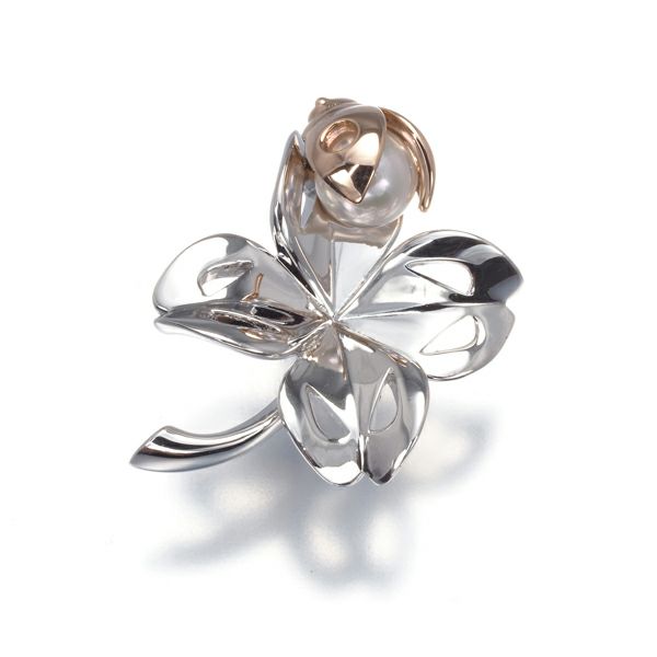 四つ葉のクローバーに一匹のテントウ虫が佇むデザインが素敵なミキモトのブローチジュエリー。