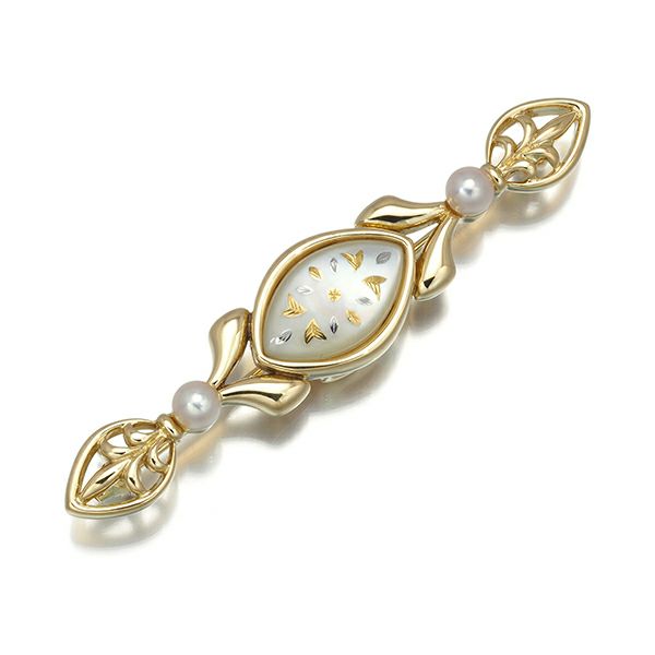 ミキモト ブローチ ベビーパール 真珠 4.0mm シェル ピクウェ K18YG/WG【中古】BLJ 大幅値下げ品