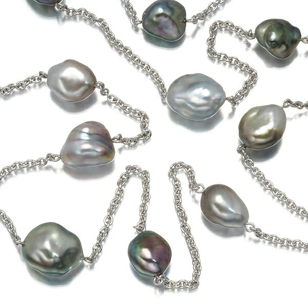 ミキモト厳選黒蝶真珠の艶やかさを80cmものロングレングスに飾ったステーションネックレス。唯一無二の形状も魅力的な輝きを放つ美しい逸品をお楽しみください。