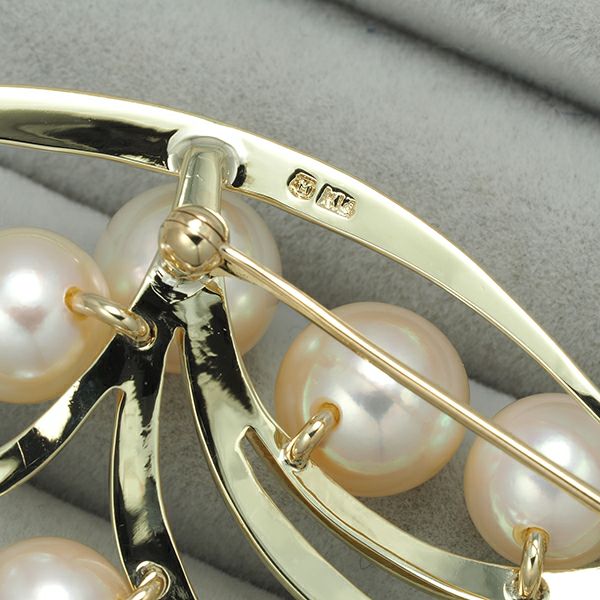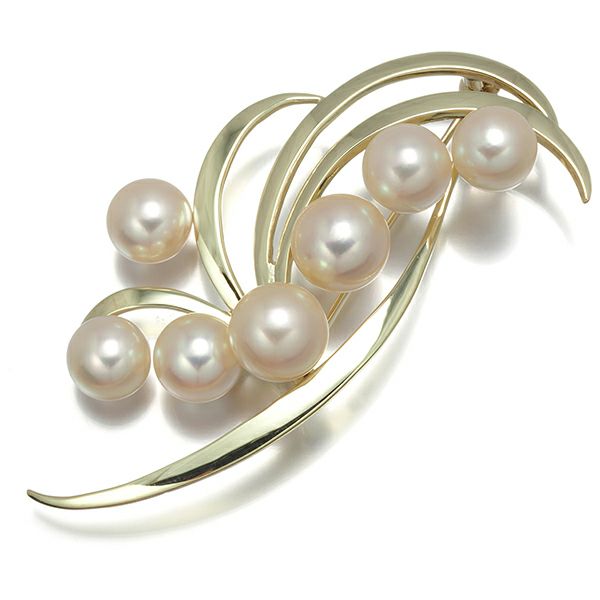 ミキモト ブローチ パール 真珠 7.2-8.3mm K14YG 【中古】BLJ