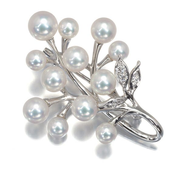 【ポイントアップ対象商品】ミキモト ブローチ パール 真珠 4.5-6.2mm ダイヤ ダイヤモンド K18WG 【中古】BLJ