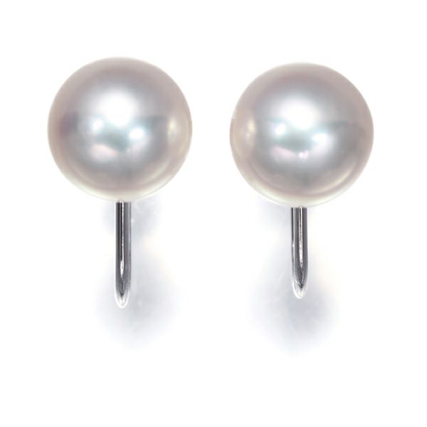 僅かなムラ、エクボのみの整った珠肌とホワイトカラーのボディにピンク色の干渉色を浮かべ神秘的な輝きを魅せるミキモト厳選アコヤ真珠のイヤリングです。