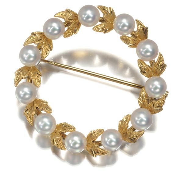 【ポイントアップ対象商品】ミキモト ブローチ ベビーパール 真珠 4.5mm リーフ リース K18YG 【中古】BLJ