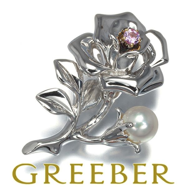 【ポイントアップ対象商品】ミキモト ブローチ ピンクサファイア パール 真珠 5.8mm 薔薇 ピン シルバー/K18YG 【中古】BLJ