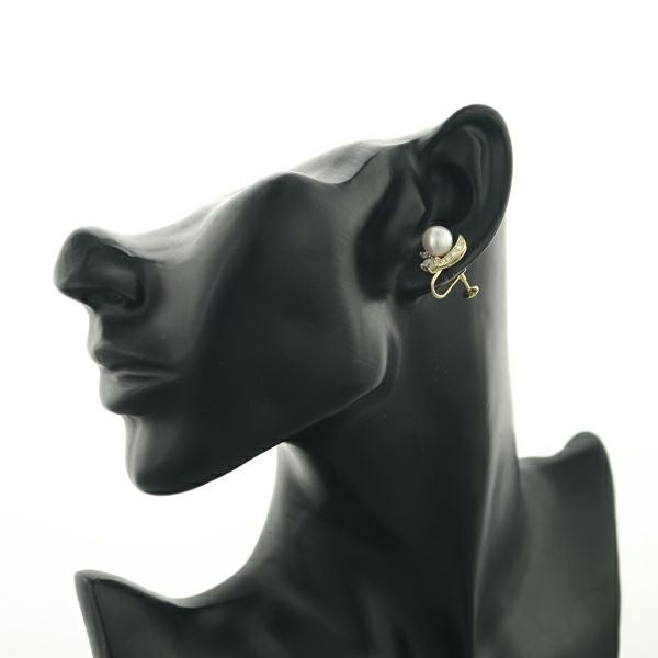 ミキモト イヤリング パール 真珠 8.4mm ダイヤ ダイヤモンド 0.24ct/0.24ct K18YG 【中古】BLJ