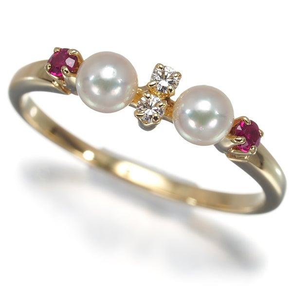 ミキモト リング ベビー パール 真珠 3.6mm ルビー ダイヤ ダイヤモンド 10.5号 K18YG 【中古】BLJ